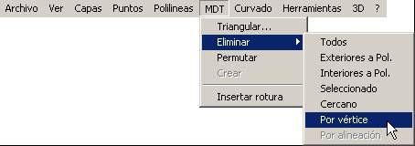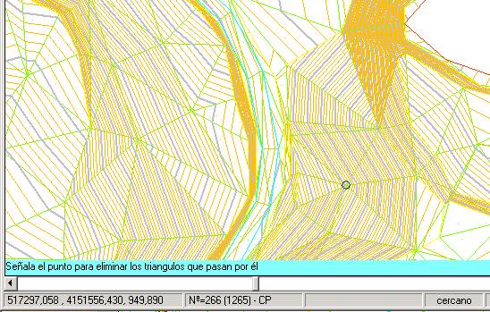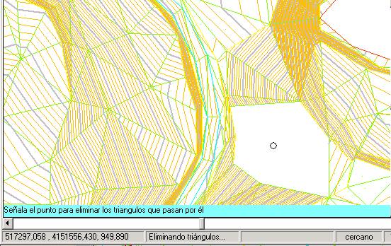 El programa nos pide un vértice que corresponde a un punto donde se apoya el MDT, para borrar todos los triángulos que lo contienen y el curvado que definen.