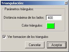 La “Distancia máxima de los lados” de los triángulos es el único parámetro que deberás modificar para el cálculo correcto. Si pones una distancia pequeña puede que haya zonas que no se triangulen o por el contrario si ponemos una muy grande se crearan triángulos perimetrales indeseados.