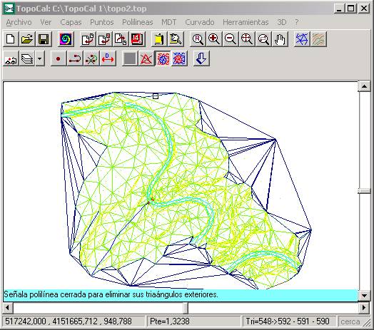 TopoCal en este sentido es muy intuitivo pues solo triangula lo que se está viendo.