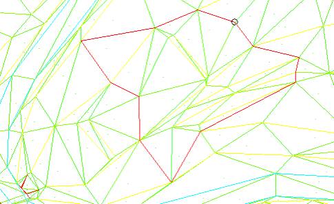 Una buena práctica es definir un perímetro con una polilínea cerrada alrededor de la zona a triangular para mas tarde poder eliminar de una sola vez todos los triángulos exteriores a esta.