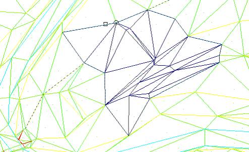 Esto resulta especialmente útil para definir mejor el terreno una vez que hacemos el curvado y vemos que el resultado no nos satisface. En vez de permutar los triángulos de esta forma quedan permanentemente definidos para futuros recálculos del MDT de forma automática.